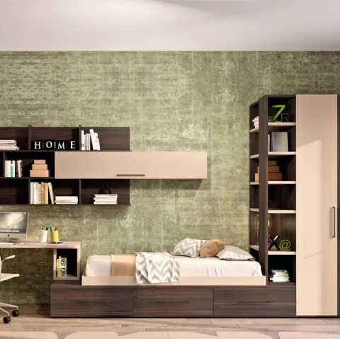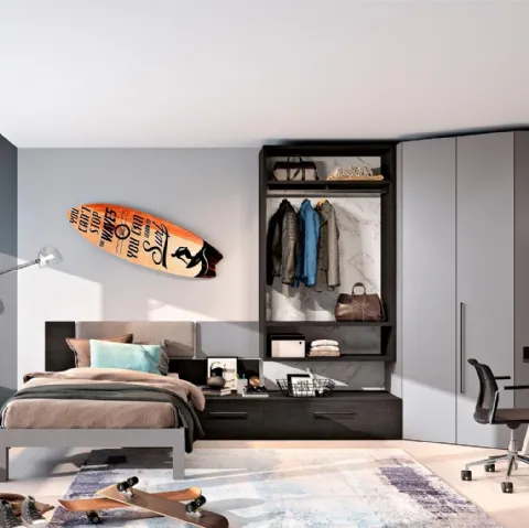 Con questa cameretta Camera per teenager Room122 Zg Mobili, tra le soluzioni componibili, potrai allestire stanze moderne per ragazzi.