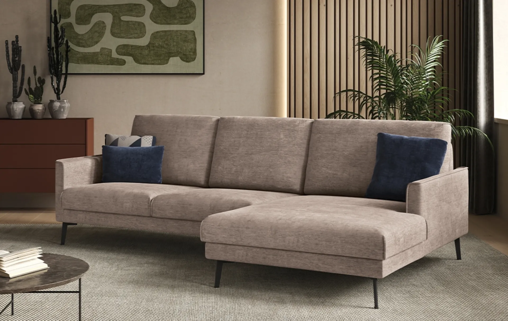 Se vuoi divani e poltrone con penisola come il modello nell'immagine, contraddistinto dai volumi che invitano a trascorrere i tuoi momenti di relax. Divano con penisola Kriss di Rigosalotti: crea uno spazio familiare e confortevole in spazi design dall'estetica raffinata. La linea di divani del brand in questione presenta diverse idee peculiari per arredare il living in nome di funzionalità, comfort e stile. I nostri Salotti sono pensati per essere abbinati a accessori di ogni tipo, come tavolini, abat jour e piantane o in combinazione con ulteriori divani in tessuto.