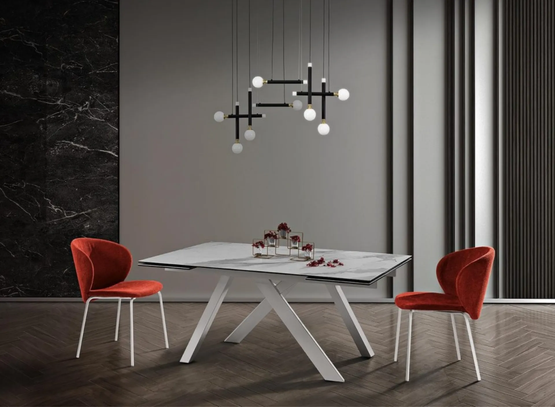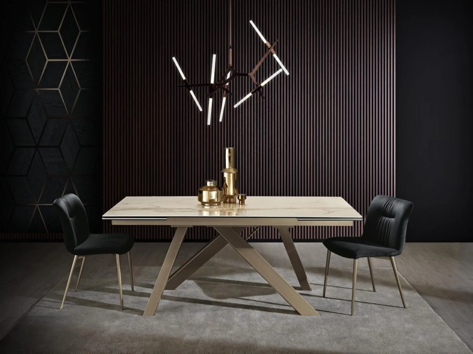 Un modello come quello nell'immagine, in abbinamento alle giuste sedie, saprà valorizzare il mood delle stanze di casa dedicate per eccellenza alla socializzazione. Se sei alla ricerca di un tavolo da pranzo di grande design, contattaci e ricevi info e preventivi sul modello presente in foto. Il rinomato brand MaxHome, specialista nella realizzazione di arredi in ceramica, ha scelto per la sua linea una grande varietà di finiture, linee e cromie. Ideali per dare vita a degli accostamenti unici con sedie e complementi moderni, i Tavoli allungabili della marca sono soluzioni tra le più originali in commercio, ideali per il soggiorno e la zona cucina. Tavolo allungabile Emme Noir Desire di MaxHome: realizzato in materiali pregiati è contraddistinto dalle linee decise del top e da un basamento elegante e sofisticato.