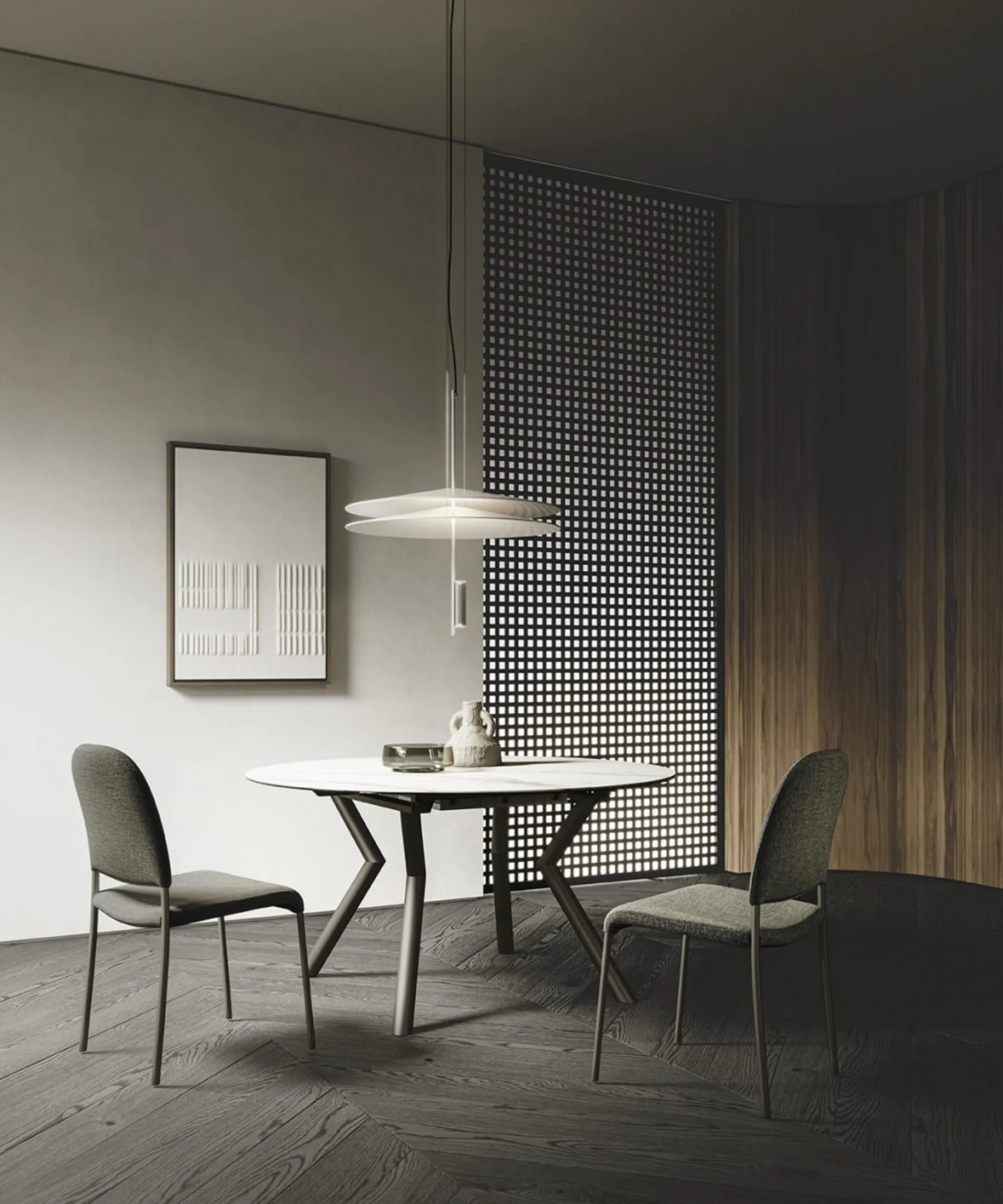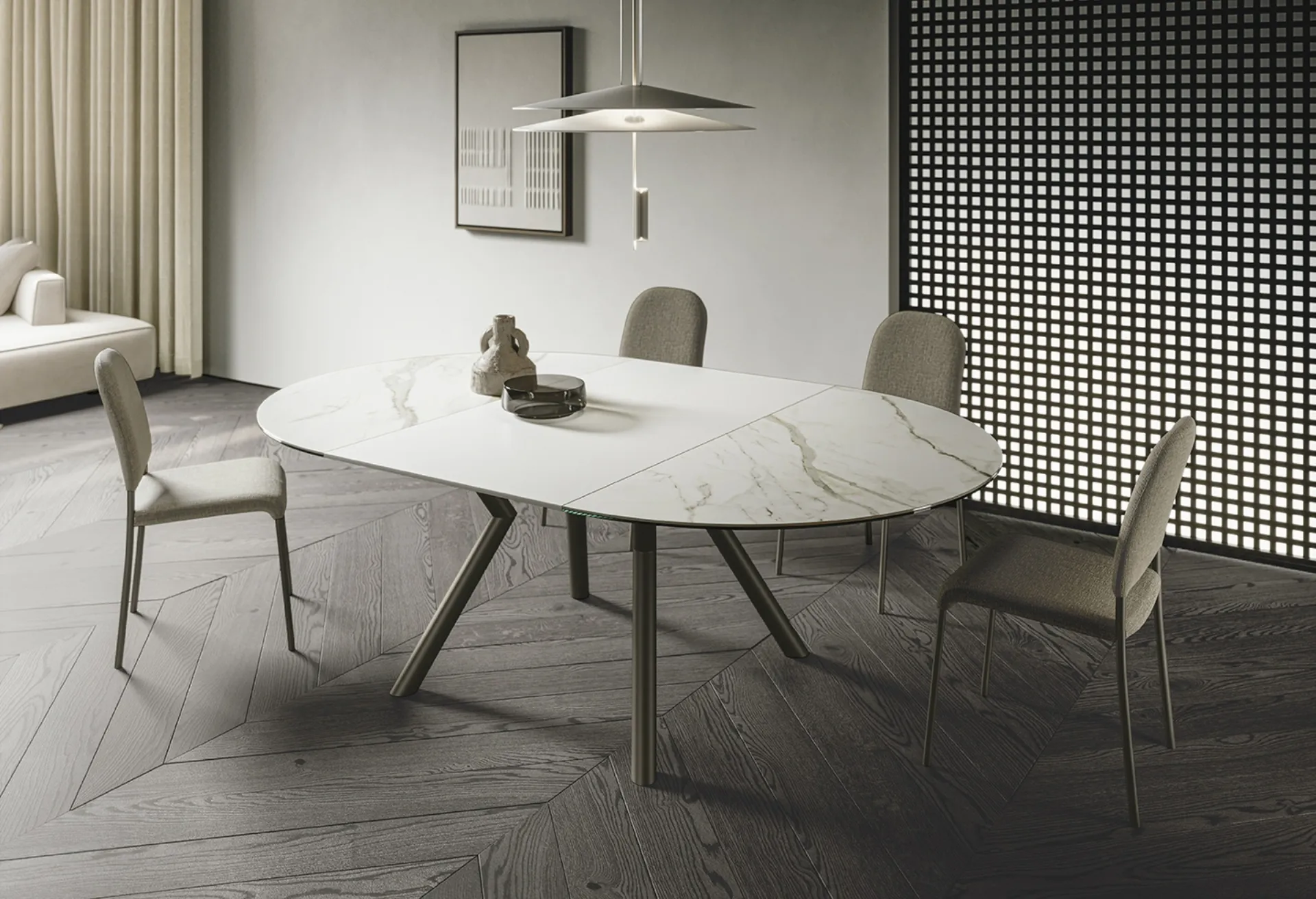 Tavolo rotondo allungabile Oliver di Sedit: con questo modello potrai completare spazi moderni garantendoti l'alta componibilità e la massima progettualità dei tavoli allungabili. In showroom troverai una ricca gamma di mobili e oggetti accessori in ceramica dei migliori brand, ideali per ultimare i tuoi spazi. La scelta dei Tavoli da pranzo è fondamentale se desideri ultimare il proprio Arredamento Casa: vanno tenuti in considerazione gli spazi disponibili, gli accostamenti cromatici e i materiali.